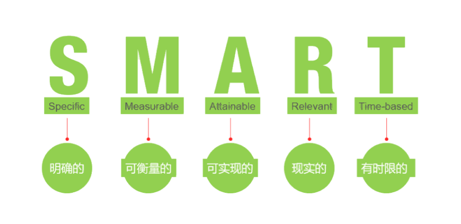 简单来说,它确保目标是明确、可衡量、可实现的、相关的和时限的。SMART是以下五个英文单词的首字母缩写: